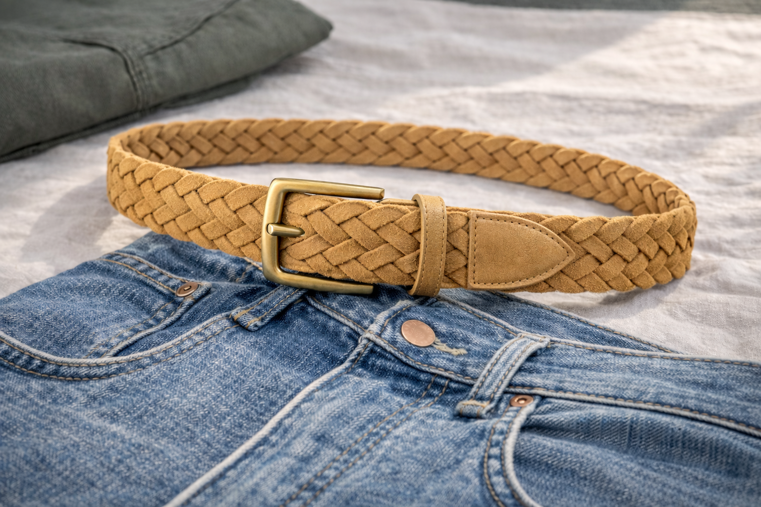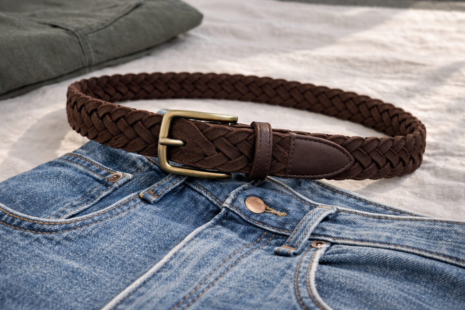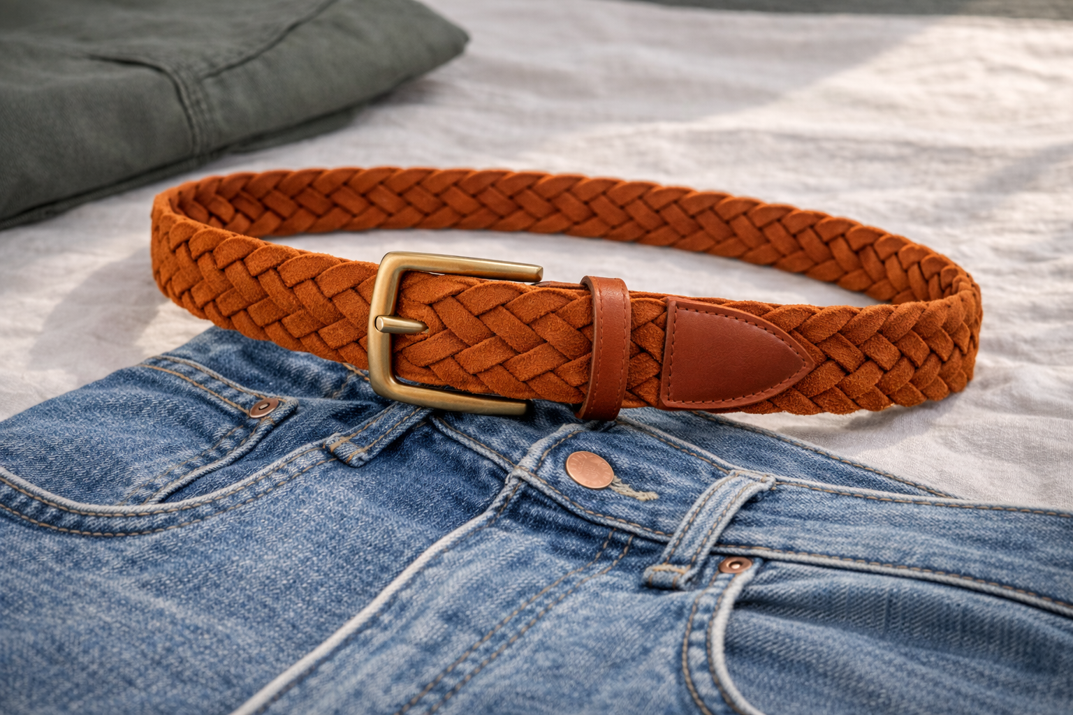 Texture is the secret ingredient that separates a good outfit from a great one. Our Cognac Suede Braided Belt introduces a tactile, artisanal element to your waistline. Crafted from luxurious, short-nap suede, this belt is hand-woven by skilled artisans. The beauty of a braided construction is its infinite adjustability; there are no pre-punched holes. You simply push the prong through the weave at the exact point that feels comfortable, making it the perfect companion for those days when you need a little extra breathing room. The cognac hue is specifically chosen for its warmth—it pairs exceptionally well with the earthy tones of olive cargos, cream linens, or classic blue denim. To ensure longevity, the tip and the buckle-join are reinforced with smooth, tonal leather, preventing the suede from stretching over time. The solid brass hardware features an antiqued finish, giving the belt a “heritage” feel that looks like it could have been passed down through generations. It is the quintessential “vacation belt,” bringing a touch of Mediterranean flair to your everyday rotation.