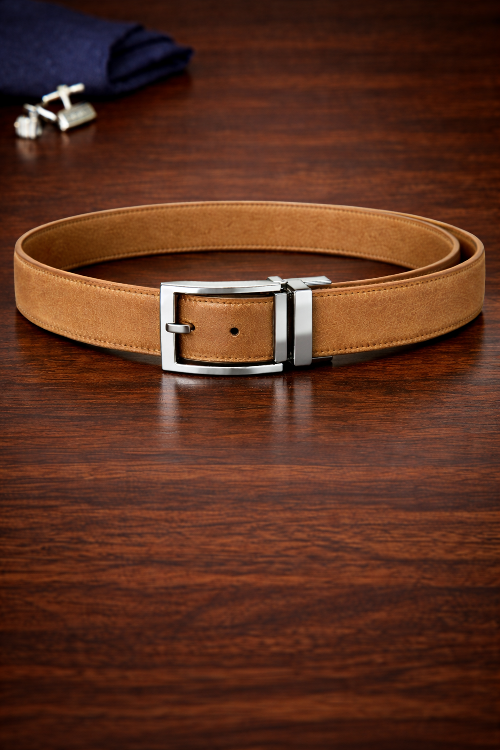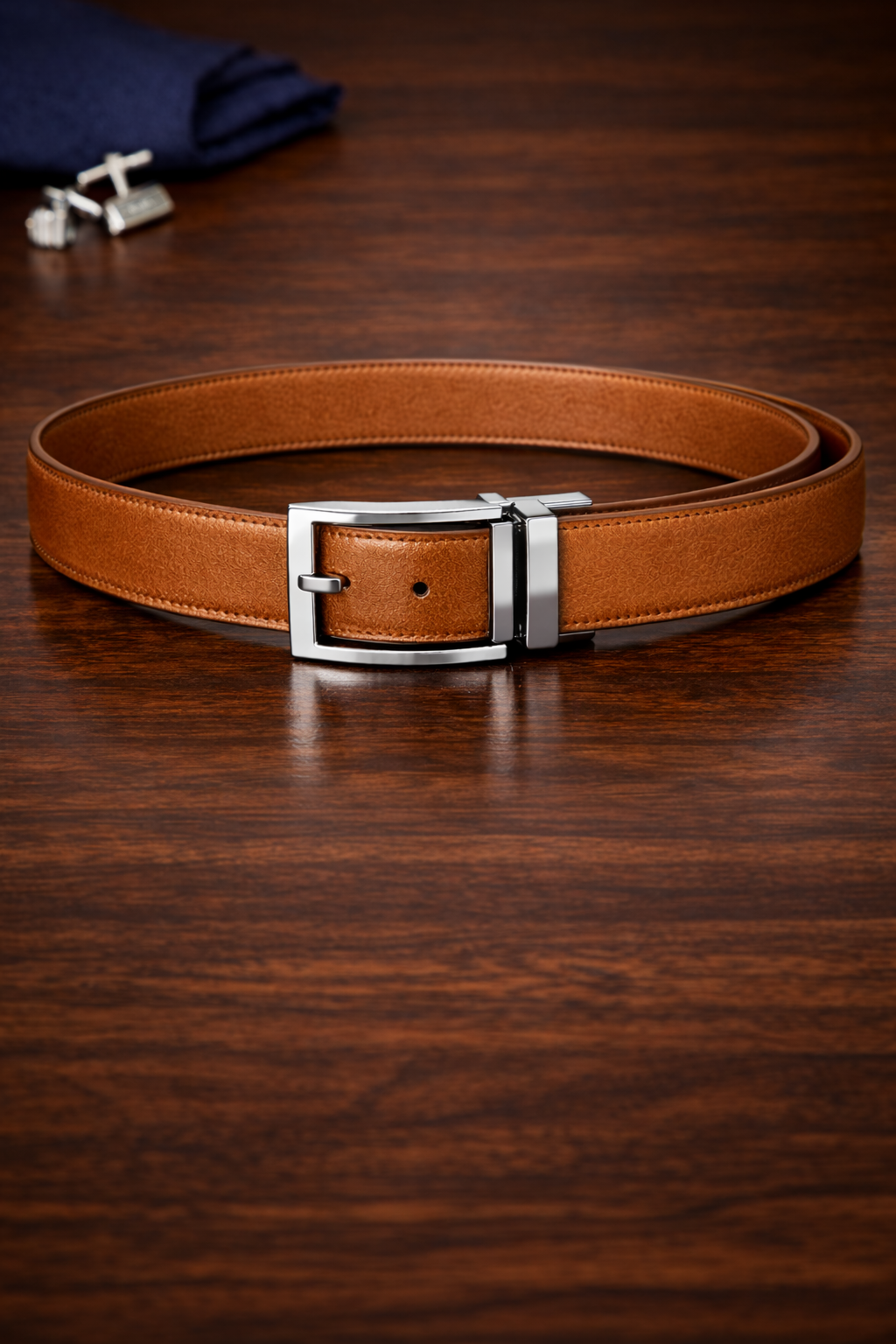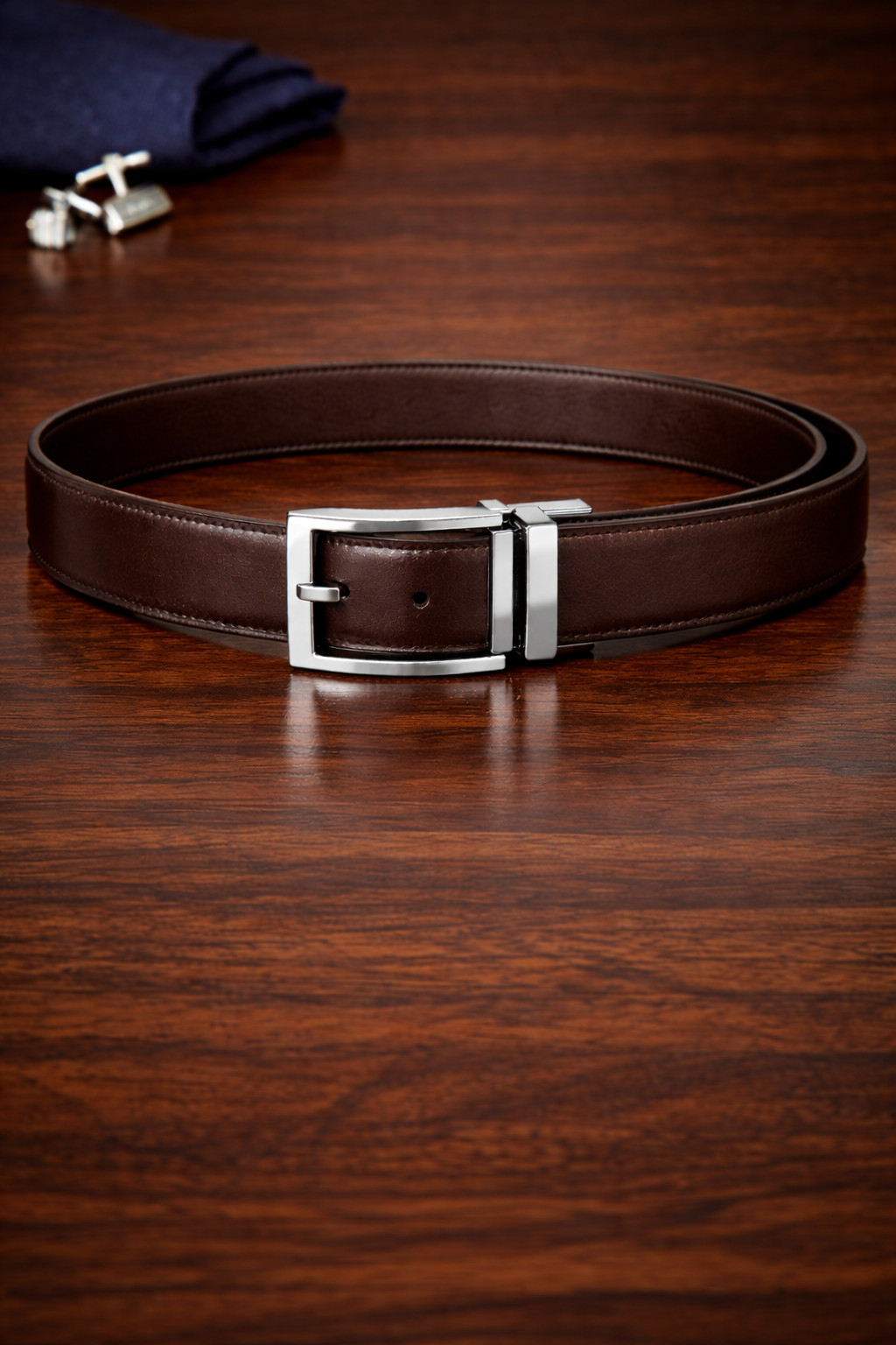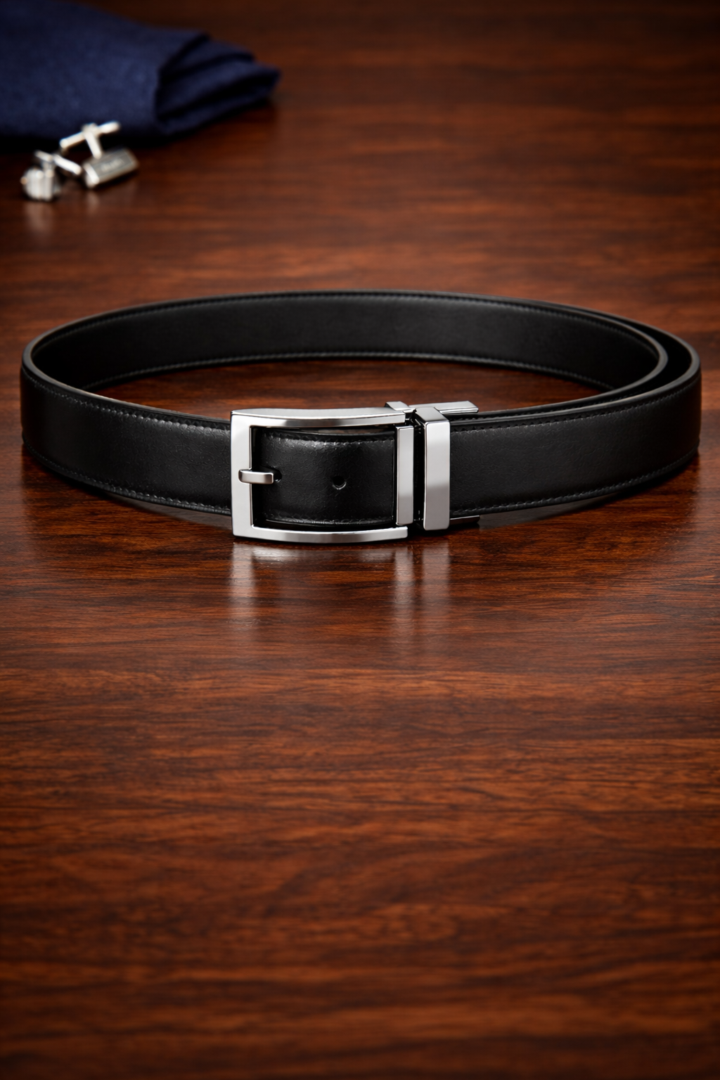 The magic lies in the high-torque pivot buckle. With a simple “pull and twist” motion, the buckle rotates 180 degrees, locking firmly into place for the reverse side. We haven’t compromised on material to achieve this versatility; both sides are crafted from top-tier calfskin leather with a reinforced core to prevent the “warping” often seen in cheaper reversible belts. The buckle itself features a minimalist, modern frame with a polished chrome finish. It’s a smart investment for the man who wants a streamlined closet without sacrificing his style options.