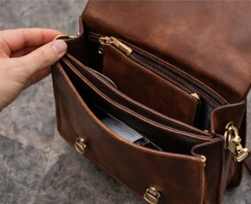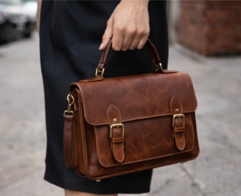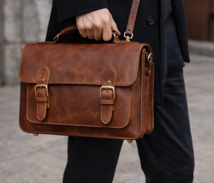 The interior is divided into three “accordion” sections, allowing you to separate your documents from your personal items. A dedicated rear zippered pocket provides a safe space for your wallet and passport, resting against your body for maximum security. The hardware is finished in an “antique brass” style, which complements the warm brown tones of the leather perfectly. Whether you’re a student, an artist, or a professional, this satchel adds a layer of intellectual sophistication to your look, proving that true style never goes out of fashion.